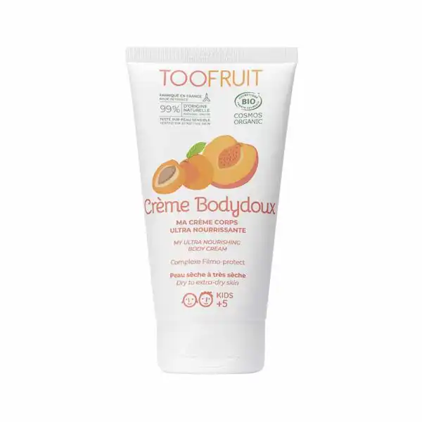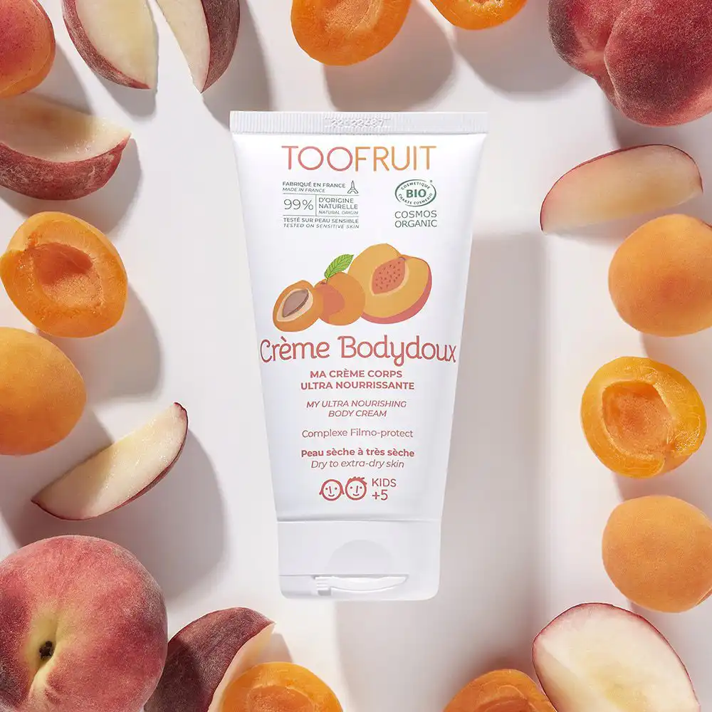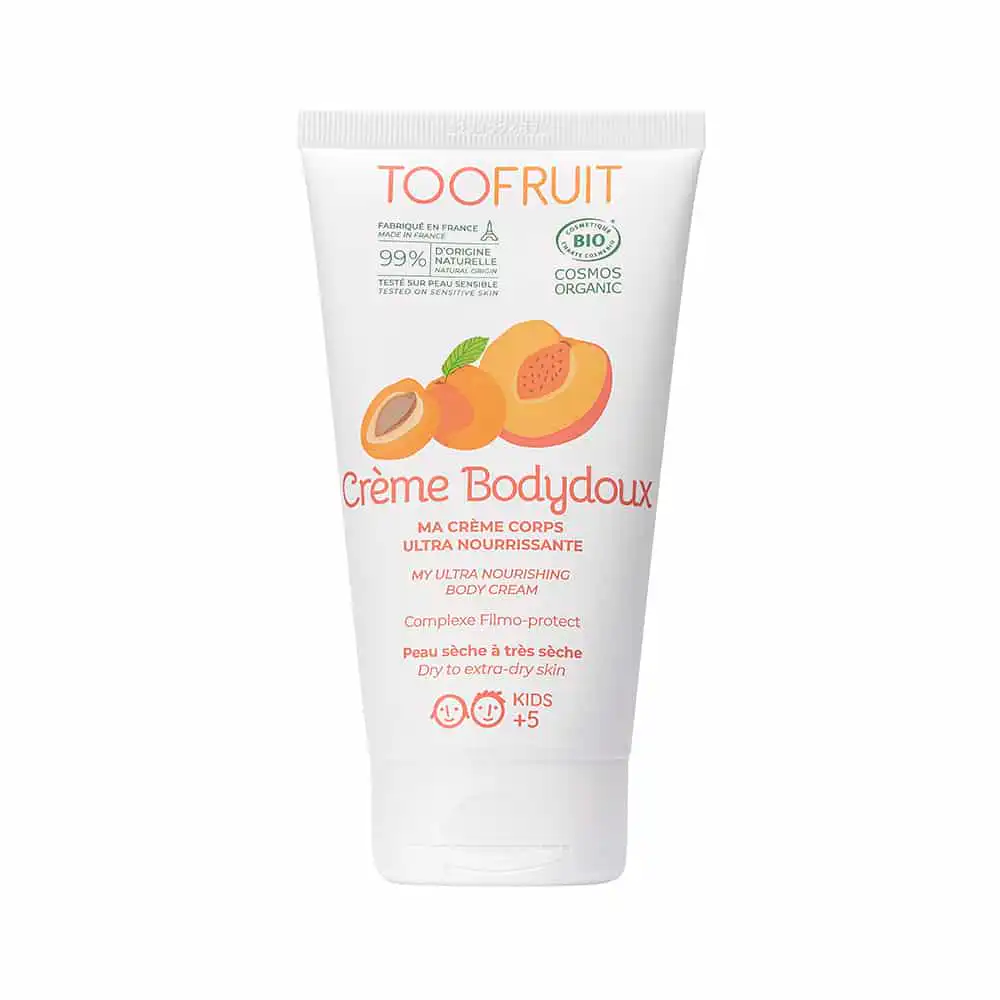 Doublement enrichie en huile d’abricot BIO et beurre de karité BIO, notre crème Bodydoux s’utilise donc en rituel de soin quotidien sur les peaux sèches à très sèches dès 5 ans, pour une peau hydratée, nourrie, réparée et protégée contre les effets négatifs du soleil, du froid, de la pollution ou encore du chlore de la piscine. Idéale dans des conditions de dessèchement extrême, notre crème corps est une vraie caresse pour la peau des enfants. Plus spécifiquement, elle joue un rôle d’hydratation essentiel sur les zones de frottement naturellement plus fragiles : coudes, genoux, pieds…