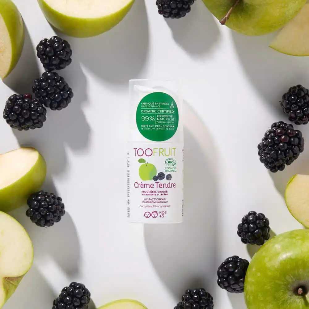 « Douce », « fragile » et « sensible », voilà trois adjectifs qui décrivent bien la peau des enfants ! Heureusement, la Crème Tendre certifiée bio TOOFRUIT est formulée spécialement pour prendre soin de la peau de leur visage au quotidien. Quoi de mieux qu’une crème hydratante visage à l’odeur délicieuse de pomme et de mûre pour prendre plaisir à adopter des gestes beauté dans la salle de bain ?